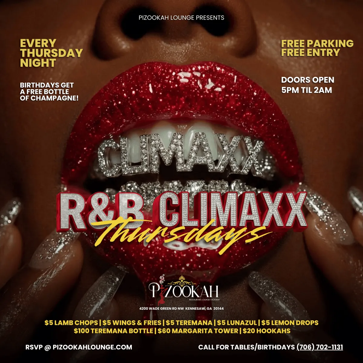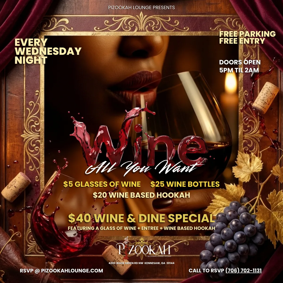 Whether you're here to unwind, celebrate, or explore new flavors, we promise an unforgettable experience. Located in the heart of Kennesaw, we are more than just a lounge – we're a destination.
